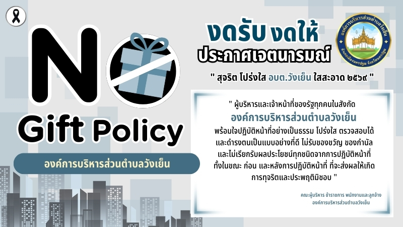 มอบนโยบายงดรับของขวัญและของกำนัลทุกชนิดจากการปฏิบัติหน้าที่ (No Gift Policy) ประจำปีงบประมาณ พ.ศ. 2568