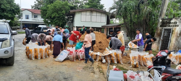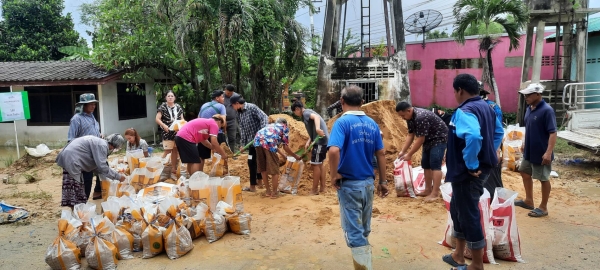 จัดหาทรายและกระสอบทรายมาให้ชาวบ้าน พร้อมทั้งจัดหาเครื่องสูบน้ำ เพื่อดำเนินการสูบน้ำออกจากพื้นที่