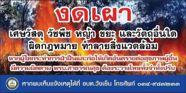 งดเผาเศษวัสดุ วัชพืช หญ้า ขยะ และวัตถุอื่นใดผิดกฎหมาย ทำลายสิ่งแวดล้อม