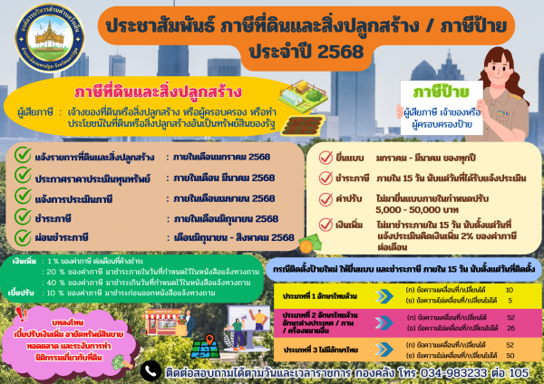 ประชาสัมพันธ์ ภาษีที่ดินและสิ่งปลูกสร้าง และภาษีป้าย ประจำปี 2568