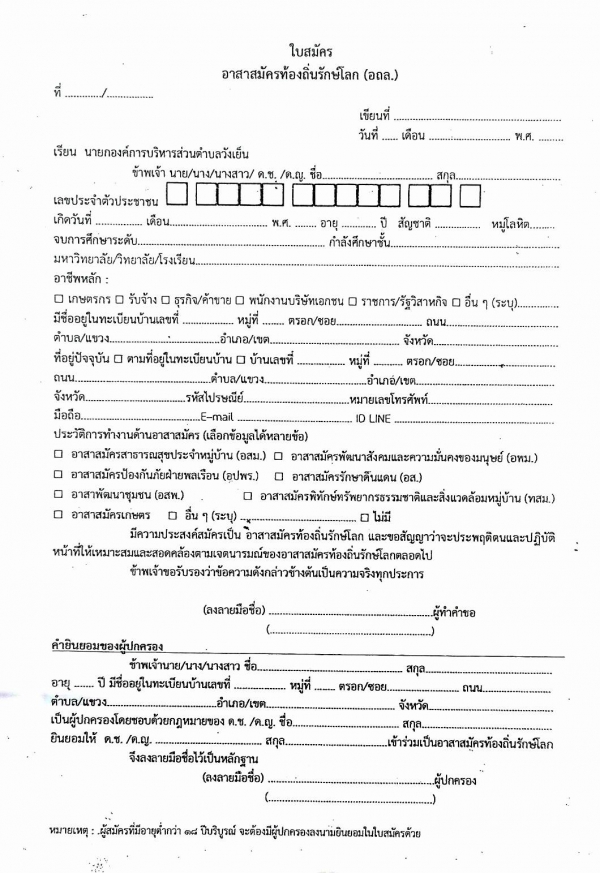 ขอเชิญชวนประชาชนร่วมสมัครสมาชิกอาสาสมัครท้องถิ่นรักษ์โลก (อถล.)