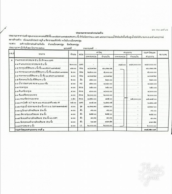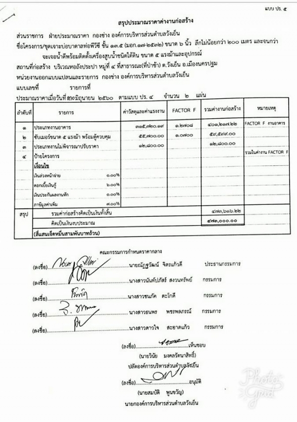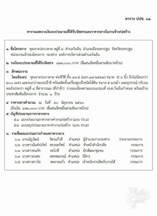 เปิดเผยราคากลาง โครงการขุดเจาะบ่อบาดาล หมู่ที่ 4 ต.วังเย็น